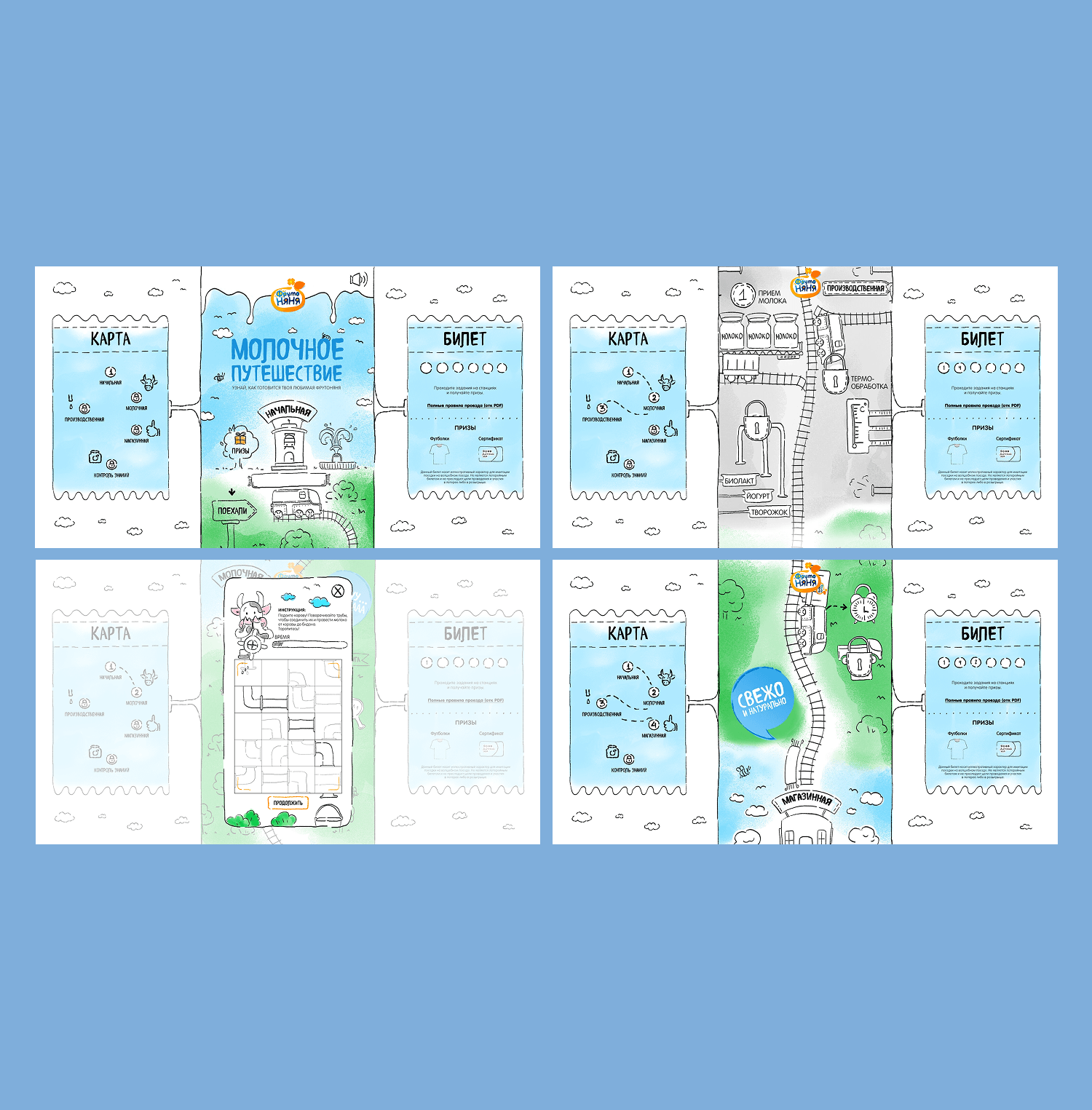 Мини-игра «Молочное путешествие» — это не просто развлечение, а интерактивная акция, в которой пользователи становятся участниками увлекательного маршрута. Главный герой — паровозик, который путешествует по карте. Задача игрока — помогать ему выполнять различные задания: от простых действий до небольших квестов. Каждое успешно пройденное испытание давало пользователю шанс участвовать в розыгрыше призов от ФрутоНяни.
